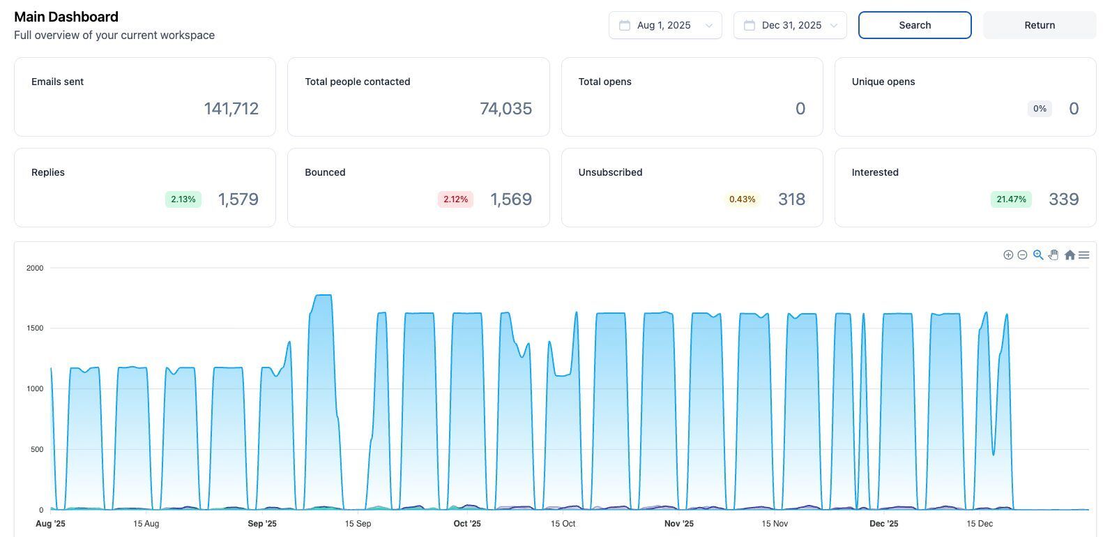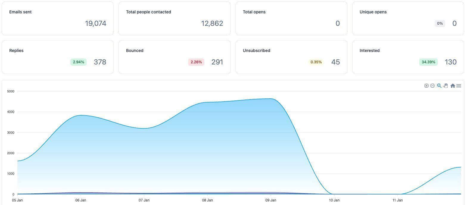 My hypothesis on why we've seen an exponential jump in results is due to simply having fresh inboxes in the rotation. These had warmed for 4 weeks, so they were primed.